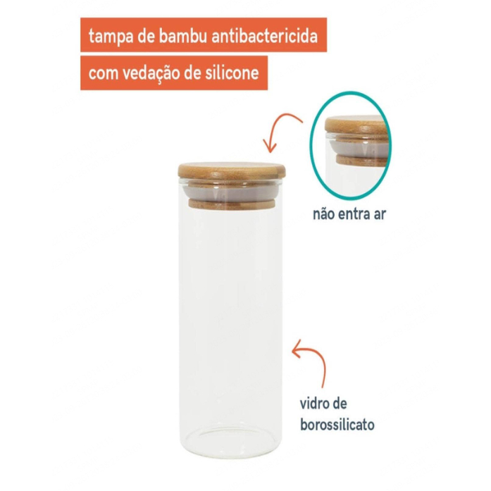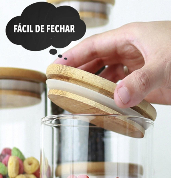 A combinação do vidro resistente, tampa de bambu antibactericida e vedação em silicone garante conservação eficiente e duradoura dos alimentos.