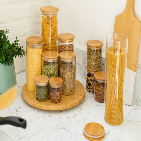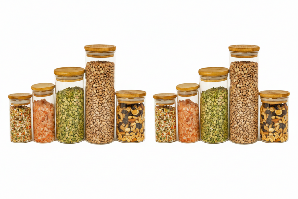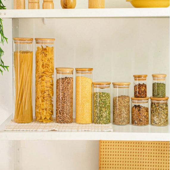 O Conjunto de Potes de Vidro Hermético com Tampa de Bambu une design sofisticado com funcionalidade real.